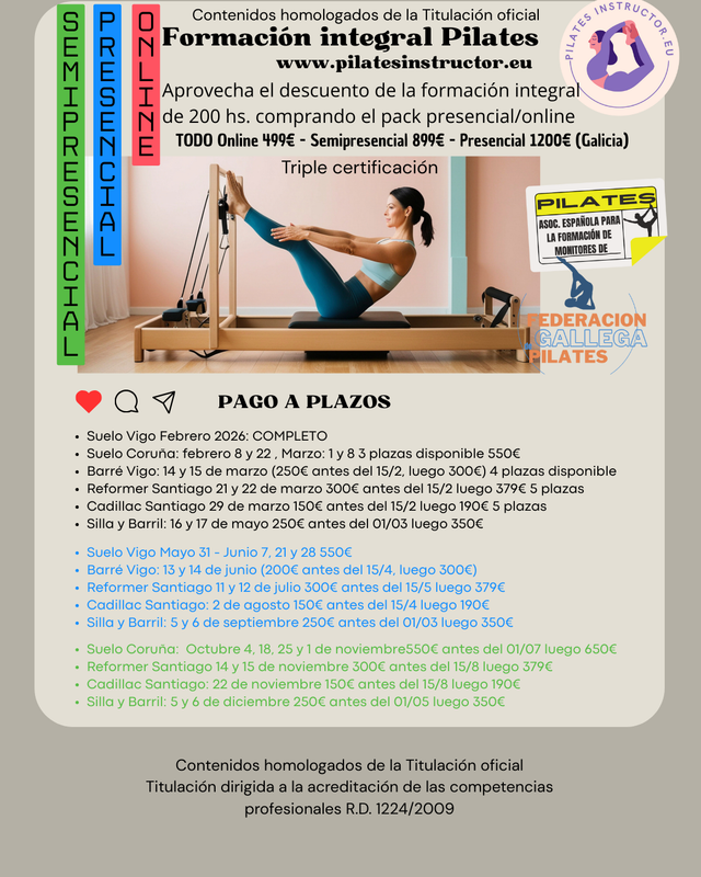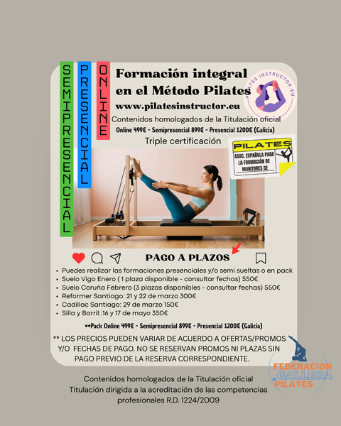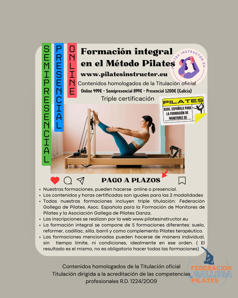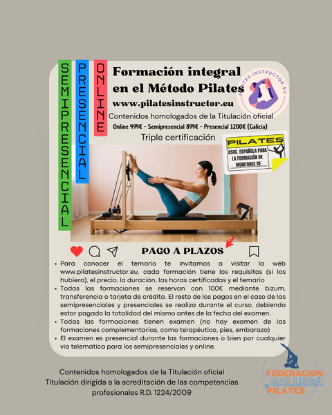 Formación Integral homologada en Pilates Suelo y Máquinas - SemiPresencial *290 hs